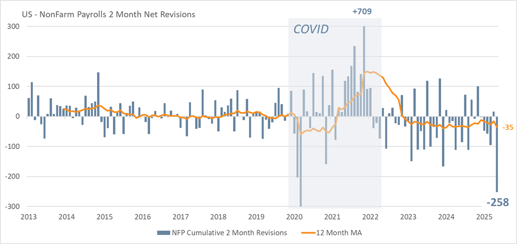 July 2025’s steep downward revision to NFP was an outlier, with over 250,000 jobs erased—far larger than the typical adjustment of around 10,000. But it was not unique, as past turning points like the 2008 financial crisis, the 2011 strike-related swings, and recent benchmark revisions have also produced very large shifts. The unexpected firing of the BLS head shortly after the weak July jobs report appears unjustified, given that large downward revisions have occurred historically at key turning points and are not unusual.